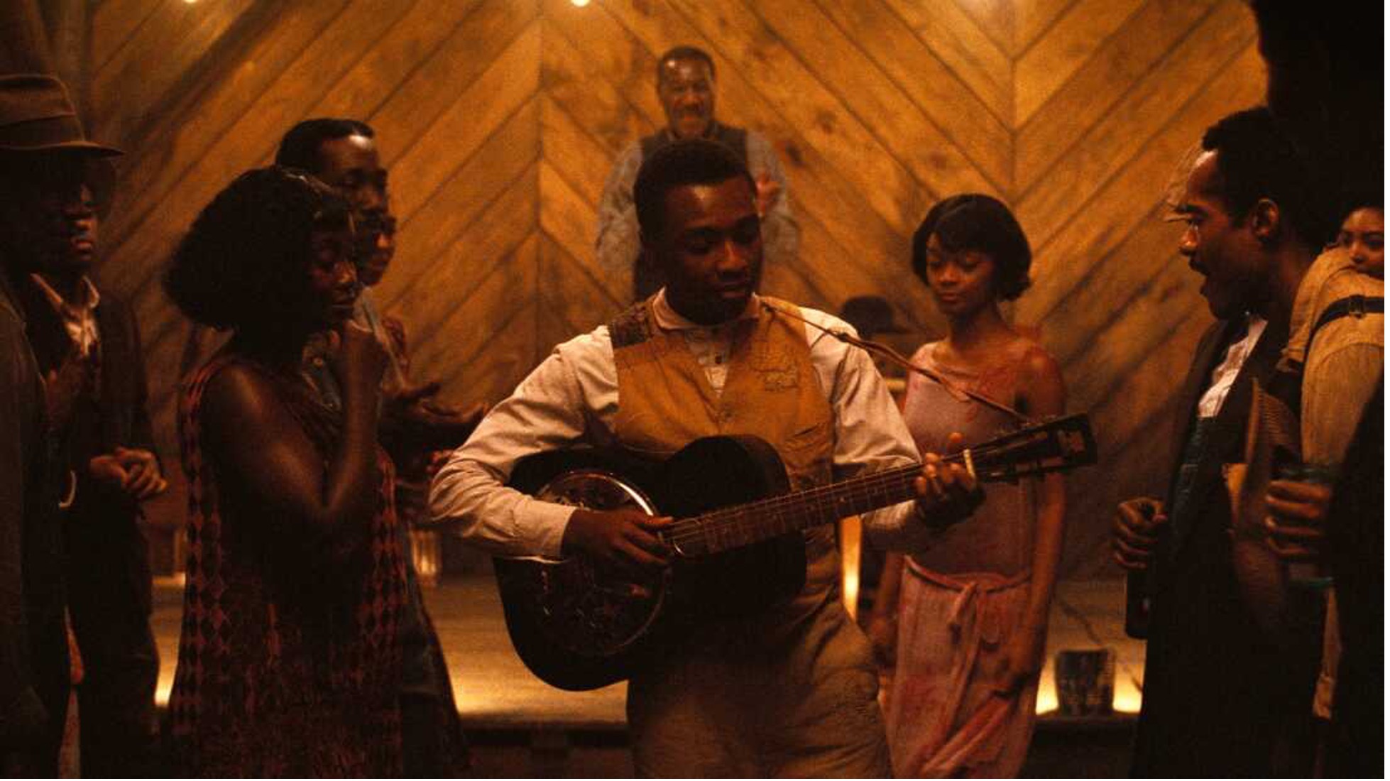 The final act of this film is a powerful and violent confrontation between the vampires and those who remain. And this is where Christianity plays a role in Sammie’s beliefs. Before the night, Sammie worked as a sharecropper and lived on the plantation with his father, who was a pastor at the plantation. In Sammie’s final confrontation with Remmick, he is seen praying. Remmick and the other vampires recite his prayer in unison as Remmick tells Sammie, “Long ago, the men who stole my father’s land forced those words upon us. I hated those men, but the words still bring me comfort.” This line reveals Coogler’s intention to portray Remmick as Irish, and it makes him a rather sympathetic villain, although his intention of taking Sammie’s talents is exploitative. The Irish were enslaved by the British colonies in the late 1600s. And the evil slave owners in both Britain and the South would use Christianity for power, rather than for good. My interpretation is that Sammie’s prayer was answered, but it wasn’t by an angel swooping down to rescue him, but by leaving enough time for Smoke to finish Remmick off before it was too late. The end-credit scene shows Sammie, seemingly before the night, singing “This Little Light of Mine” inside his father’s church with the guitar his father gave him. It is a scene I interpreted as a sign of his acceptance of his Baptist upbringing, also marking a change in Christianity by expressing black culture through not only music but also faith.